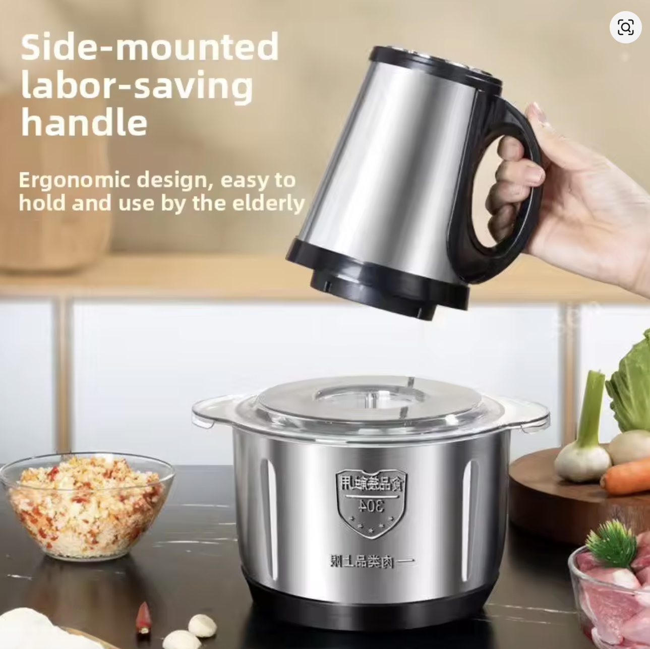 Picadora de Carne Eléctrica de Acero Inoxidable 2L – Potente, Segura y Multifuncional